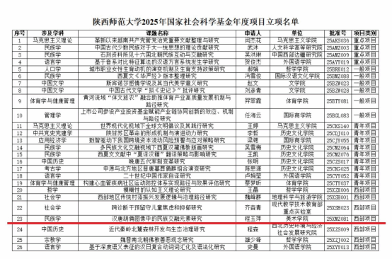 9月29日,全国哲学社会科学工作办公室公布了2025年国家社会科学基金年度项目立项名单。伟德betvlctor教师程玉萍申报的《汉唐胡俑图像中的民族交融元素研究》荣获西部项目立项。