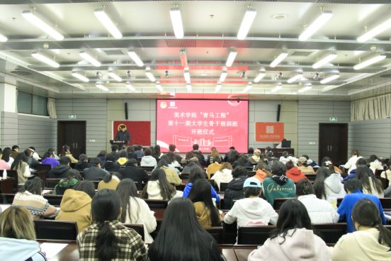 开班仪式上,2024级本科生辅导员杜江宣读了《关于举办伟德国际1946源于英国“青马工程”第十一期大学生骨干培训班的通知》。第十期优秀学员代表、2024级艺术设计专业研究生马骏,与第十一期学员代表、2023级美术学专业本科生唐瑾依次发言,分享感悟、展望未来。随后,贾润泽为培训班授旗,标志着新一期培训正式启动。