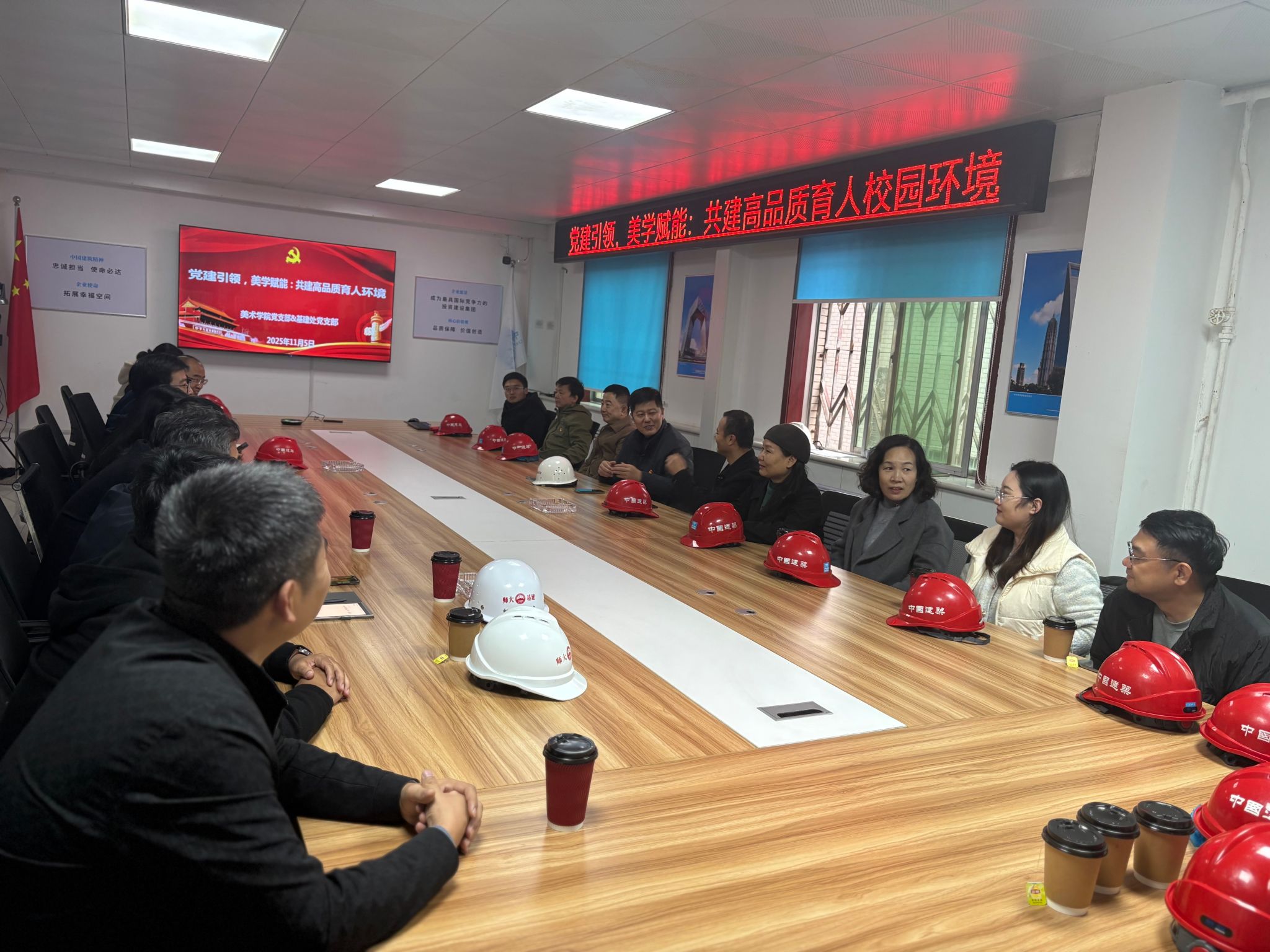 全体党员首先实地参观学生公寓二期项目建设现场,详细了解项目的整体规划、阶段性目标及当前建设进展。随后,双方围绕党的二十届四中全会精神及2025年下半年党员基本培训内容,结合工作实际展开深入交流,就如何将美学理念融入校园基建、艺术元素怎样提升空间品质等问题进行探讨,并初步达成后续协同共建的合作意向。